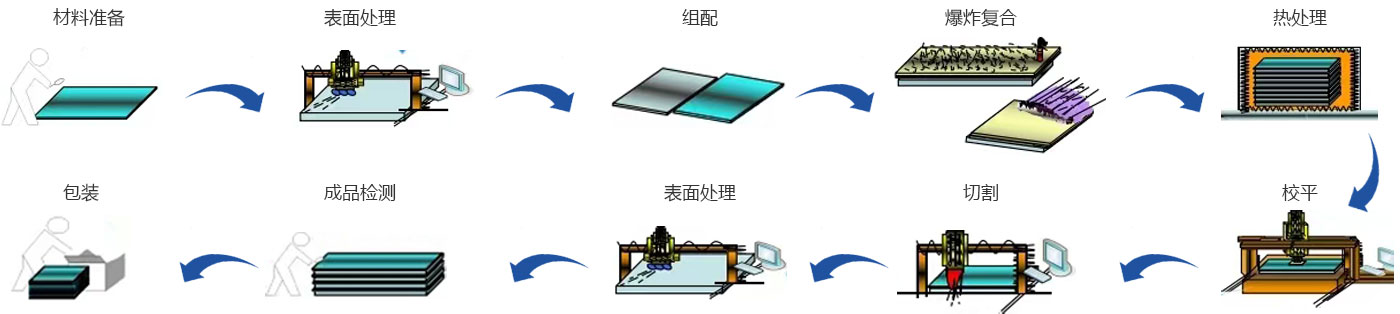 不銹鋼復合板爆炸復合的生產方法。 爆炸復合是將不銹鋼板重疊置于碳鋼基板上,不銹鋼板和碳鋼基板之間用墊子間隔出一定的距離,在不銹鋼板上面平鋪炸藥,炸藥爆炸的能量使不銹鋼板高速撞擊碳鋼基板,產生高溫高壓使兩種材料的界面實現固相結合。 不銹鋼復合板是以碳鋼基層與不銹鋼覆層結合而成的復合板鋼板。它的主要特點是碳鋼和不銹鋼形成牢固的冶金結合,可以進行熱壓、冷彎、切割、焊接等各種加工,有良好的工藝性能。不銹鋼復合板的基層材料可以使用Q235B、Q245R、Q345B,Q345R等各種普通碳素鋼和專用鋼。覆層材料可以使用304、316L、321和雙相不銹鋼等各種牌號的不銹鋼。材質和厚度可以自由組合,滿足不同用戶的需要。不銹鋼復合板已經廣泛應用于石油、化工、鹽業(yè)、水利電力等行業(yè)。不銹鋼復合板作為一種資源節(jié)約型的產品,減少貴重金屬的消耗,大幅度降低工程造價。實現低成本和高性能的***結合,有良好的社會效益。 不銹鋼復合板是怎樣生產的呢?不銹鋼復合板工業(yè)化生產主要有兩種方法,爆炸復合和熱軋復合。爆炸復合板的生產工藝是將不銹鋼板重疊置于碳鋼基板上,不銹鋼板和碳鋼基板之間用墊子間隔出一定的距離。不銹鋼板上面平鋪炸藥,炸藥爆炸的能量,使不銹鋼板高速撞擊碳鋼基板,產生高溫高壓使兩種材料的界面實現固相焊接。理想狀態(tài)下,界面的每平方毫米的剪切強度可以達到400MPa以上。熱軋復合板工藝是以碳鋼基板和不銹鋼板處于物理純凈狀態(tài),在高度真空條件下進行軋制而成。在軋制過程中兩種金屬擴散實現完全的冶金結合。但是不能解決10mm以上金屬的復合,這種焊接只具有壓軋焊接的特點,不像爆炸焊接融合了壓力焊、熔化焊、和擴散焊的特點,爆炸焊為不同基體金屬的結合提供了更多和更好的條件。正因為如此,同種和異種金屬都可以爆炸焊接以上兩種復合板制造方法都執(zhí)行GB/T-8165-1977國家標準。該標準非等效采用日本JISG3601-1990標準,主要技術指標相同或高于日本標準。 那么爆炸復合工藝特點如何呢?爆炸復合的特點:一、由于爆炸復合是冷加工,因此它可以產生100多種金屬復合板,如鈦、銅、鋁等等。二、爆炸復合可以生產不銹鋼復合板總厚度可以達到幾百毫米厚的不銹鋼復合板,不銹鋼復合板兼具各種碳素鋼和不銹鋼的特點,以其優(yōu)異的性能價格比為用戶歡迎,有廣闊的市場前景。但有趣的是,從五十年代開始,經過半個多世紀風風雨雨的開發(fā)過程,仍然有很多人不知道它。更多的人未使用過它。應該說不銹鋼復合板的市場遠未進入成熟期,仍在開發(fā)過程中。科技工作者為建設資源節(jié)約型社會的探索和努力永遠不會停止。洛陽京久金屬復合材料有限公司致力于各種金屬爆炸復合材料的研究與開發(fā)生產,永不停歇的努力滿足社會發(fā)展對金屬復合材料的需求。